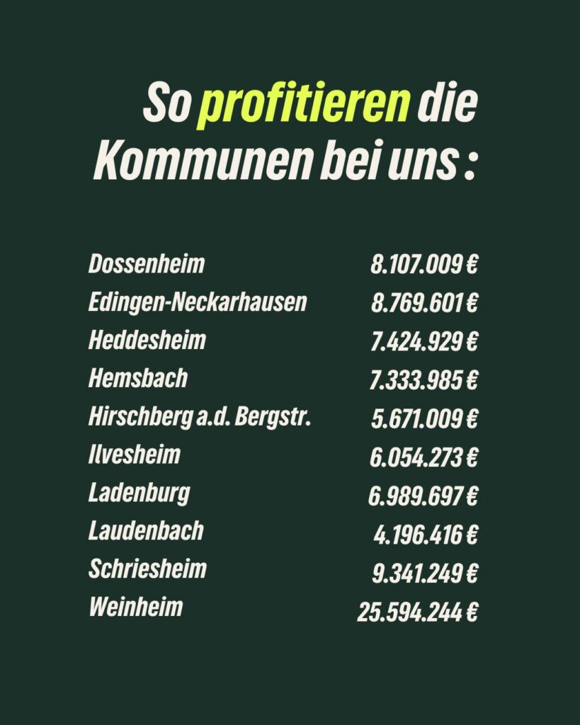 „Es ist ein massives Investitionspaket in die Zukunft unserer Kommunen: Jetzt steht fest, wie die Mittel aus dem Bundes-Sondervermögen „Infrastruktur“ an die Städte, Gemeinden und Landkreise in Baden-Württemberg verteilt werden. Die zehn Kommunen in meinem Wahlkreis Weinheim, Neckar und Bergstraße erhalten insgesamt 90 Millionen Euro und profitieren damit erheblich. Der Rhein-Neckar-Kreis erhält als Kreis darüber hinaus mehr als 106 Millionen Euro. Ich freue mich sehr über die stattlichen Zuweisungen!